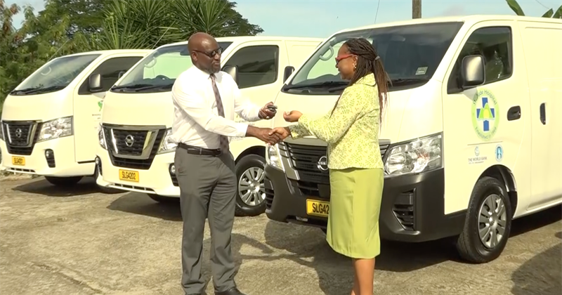 The Ministry of Health handed over two panel vans, supply of pharmaceuticals, infrared thermometers and universal transport kits. The St. Jude Hospital received one panel van and one double cab pick-up. The Ezra Long Lab at the Owen King EU Hospital accepted receipt of laboratory consumables and reagents.